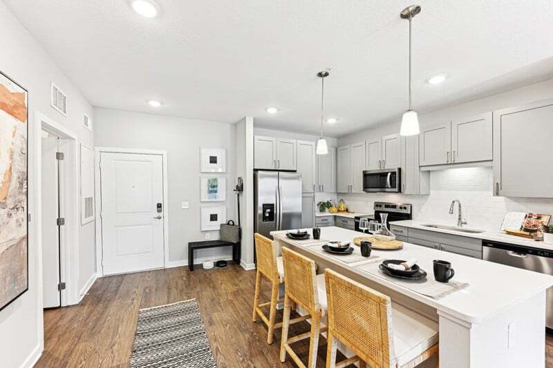 The iconic Orlando Packing District holds a special place in the hearts of many, symbolizing a connection between the history of Florida's orange and citrus industry with modern living. Our selection of luxury one-, two-, and 3-bedroom apartments boasts a fresh and stunning design that is sure to captivate your lifestyle. With modern finishes and stylish details, our apartment homes offer a new living experience that is both welcoming and stylish. Whether you're looking for a cozy one-bedroom retreat or a spacious three-bedroom home, District West is the perfect place to create new memories.