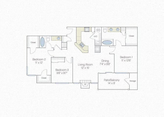 A1 - Floorplan 1 Floor plans are artist's rendering. All dimensions are approximate. Actual product and specifications may vary in dimension or detail. Not all features are available in every rental home. Prices and availability are subject to change. Base rent is based on monthly frequency. Additional fees may apply, such as but not limited to package delivery, trash, water, amenities, etc. Deposits vary. Please see a representative for details.