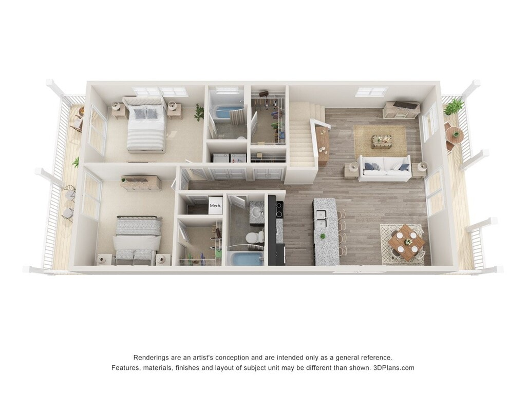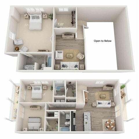 - Large 3-bedroom, 3-bathroom lofted floorplans