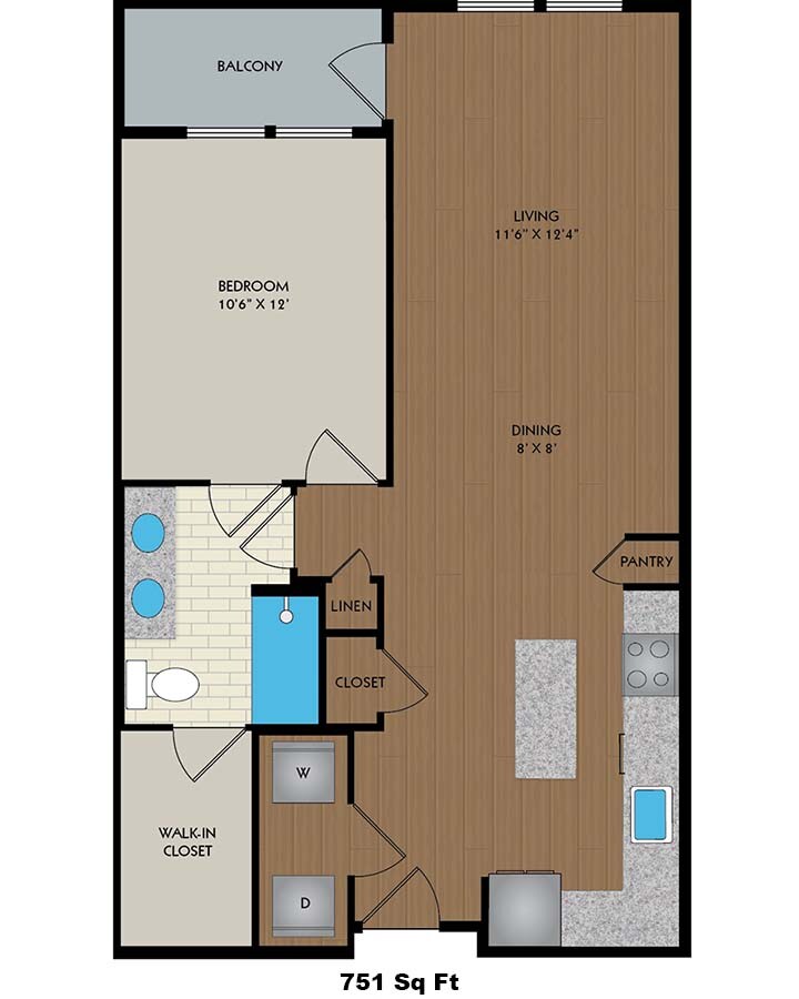 1 Bed, 1 Bath, 708 sq ftAvailable NowModel Gallery