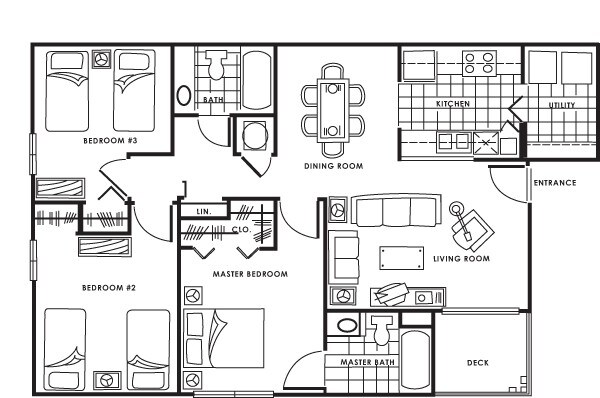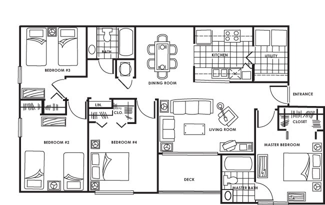 Three Bed, Two Bath - Floorplan 1 4 Bedrooms