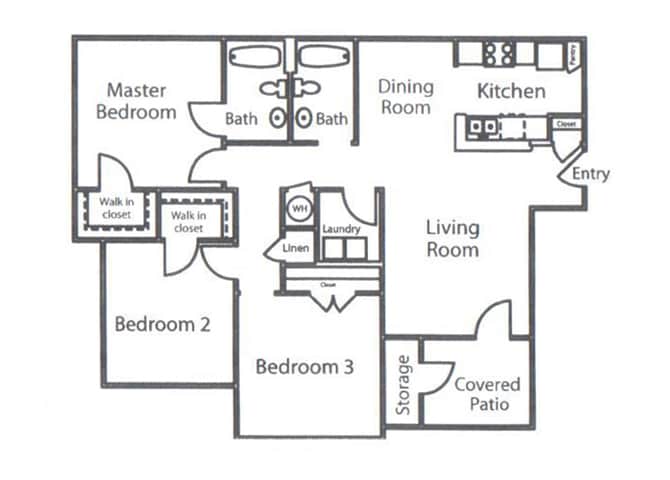 3 Bed 2 Bath - Floorplan 1 Three Bed, Two Bath