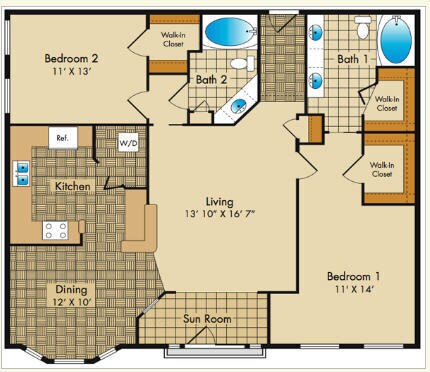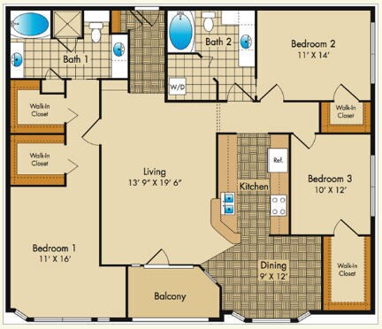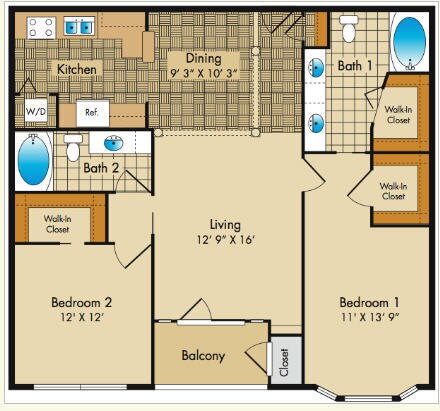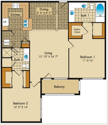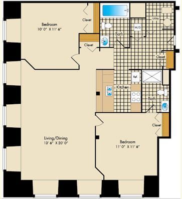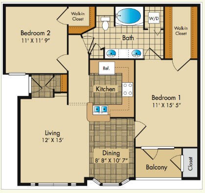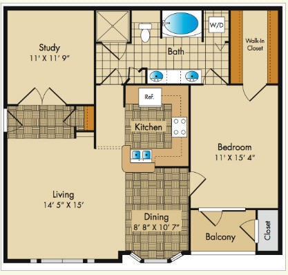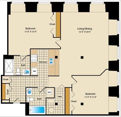 Apartment Model: B II$1,2451 Bedroom, 1 Bath, 701-798 sq ftAvailable Now![]()