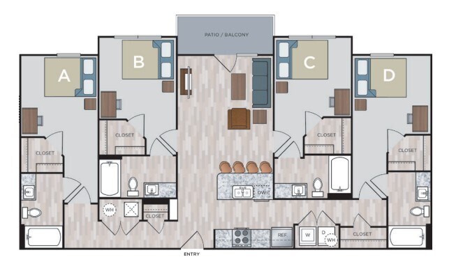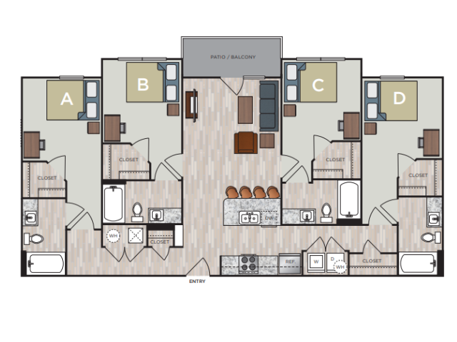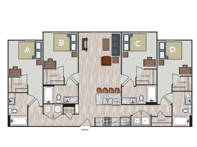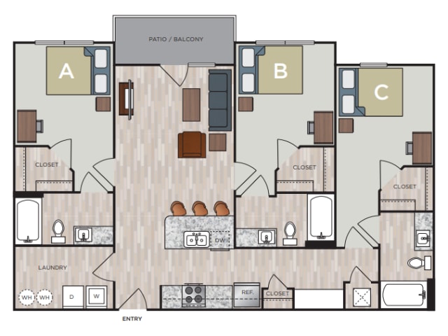 Apartment Model: C1 - 3x3$1,0753 Bedroom, 3 Bath, 1325 sq ftAvailable Now![]()