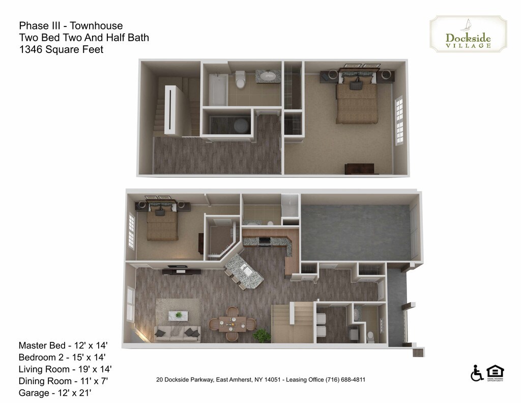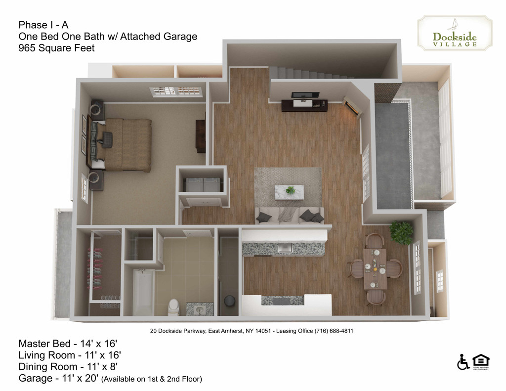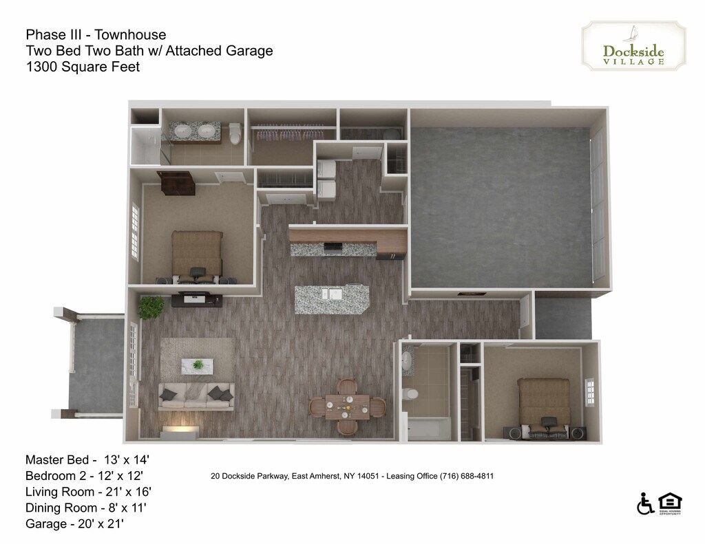 Located on Transit Road in East Amherst, the most sought after zip code in WNY. According to Money Magazine and CNN, East Amherst ranks among the top 50 most livable cities in the country. Top Ranked Williamsville School District with easy access to major highways, shopping & entertainment. With 25 floorplans to chose from, Dockside Village is like no other. An amazing community with TWO heated salt water pools, 24/7 fitness center, Theater Room, Business Center, Coffee Bar, Grand Party Room, Two Playgrounds and Private Access to Dann Lake. We also offer personal fitness instruction for residents only. Your apartment doesn't disappoint either...pet friendly, attached garages, stainless steel appliances, gas fireplaces, vaulted ceilings and high end finishes. We also include high speed internet and a deluxe cable package along with valet trash service. Come be a part of something GREAT at Dockside Village!