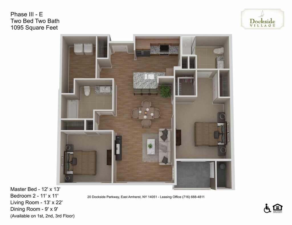 Apartment Model: Two Bedroom Phase 3$1,7862 Bedroom, 2 Bath, 1075 sq ftAvailable Now![]()