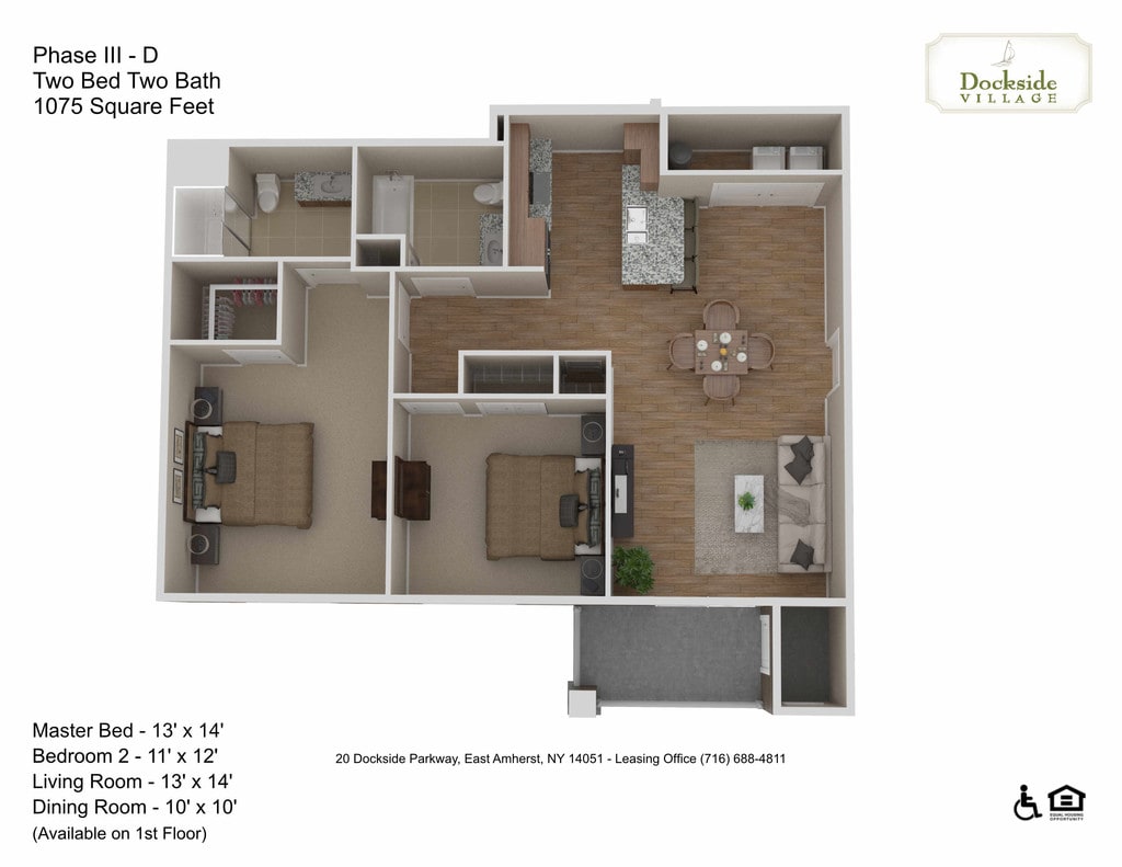 2 Beds, 2 Baths, 1075 sq ftAvailable NowModel Gallery