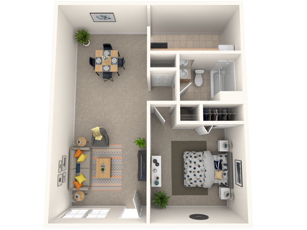 - 1 Bedroom- 1 Bed 1 Bath- From $8701 Bed, 1 Bath, 576 sq ftAvailable Dec 12- Model Gallery- Floorplans- Availability Details- Price - Availability Date - Unit - Sq Ft - View Details - $870 - December 12, 2025 - D2242 - 576 - $870 - December 15, 2025 - D2347 - 576 - $870 - January 7, 2026 - P8078 - 576 - Model Amenities and Features- Features- High Speed Internet Access