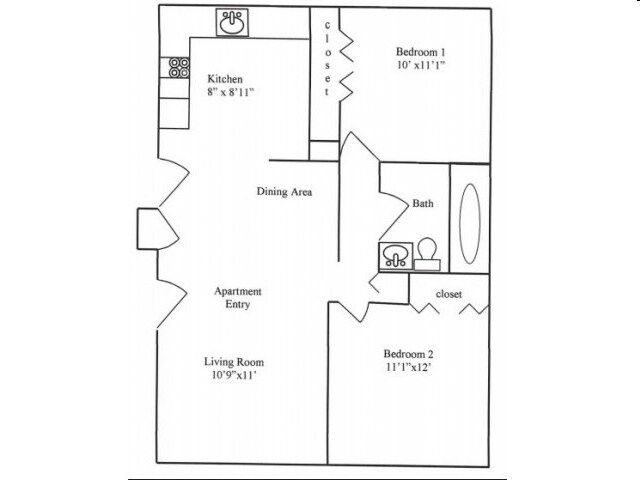 2 Beds, 1 Bath, 800 sq ftAvailability Details