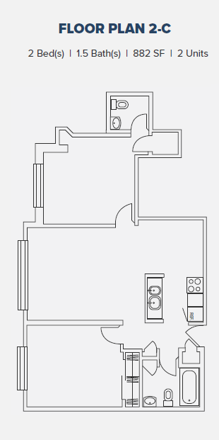 Apartment Model: Two Bed - 2CCall For Rates2 Bedroom, 1.5 Bath, sq ftAvailable Now![]()