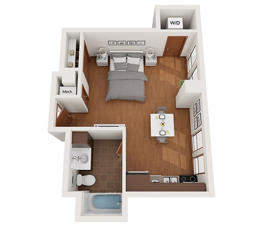 Studio, 1 Bath, 556 sq ftAvailable July 15, 2026Largest StudioThis is the largest Studio at this PropertyModel Gallery