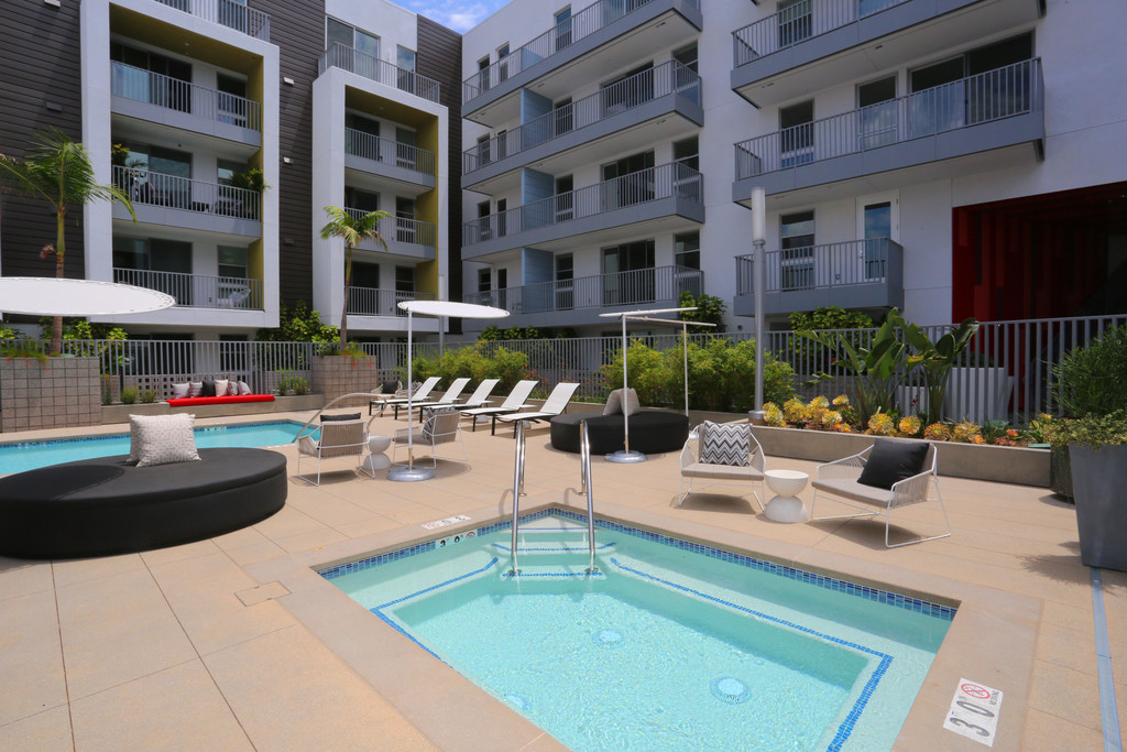Domain West Hollywood features dramatic architecture with signature looks and polished interiors, all matched by luxurious amenities, sultry spaces and a dramatic rooftop retreat overlooking the Hollywood Hills. Choose from our spacious studio, one or two-bedroom apartment homes. Discover upscale interiors combined with innovative community amenities, all placed in the center of West Hollywood. Thrive with spectacular views of the Hollywood Hills and LA skyline as you relax in our sky deck for a magical escape. Domain West Hollywood's coveted location merges the energy and access of L.A. with a walkable neighborhood full of retail, restaurants and the charming tree-lined streets of early Hollywood.
