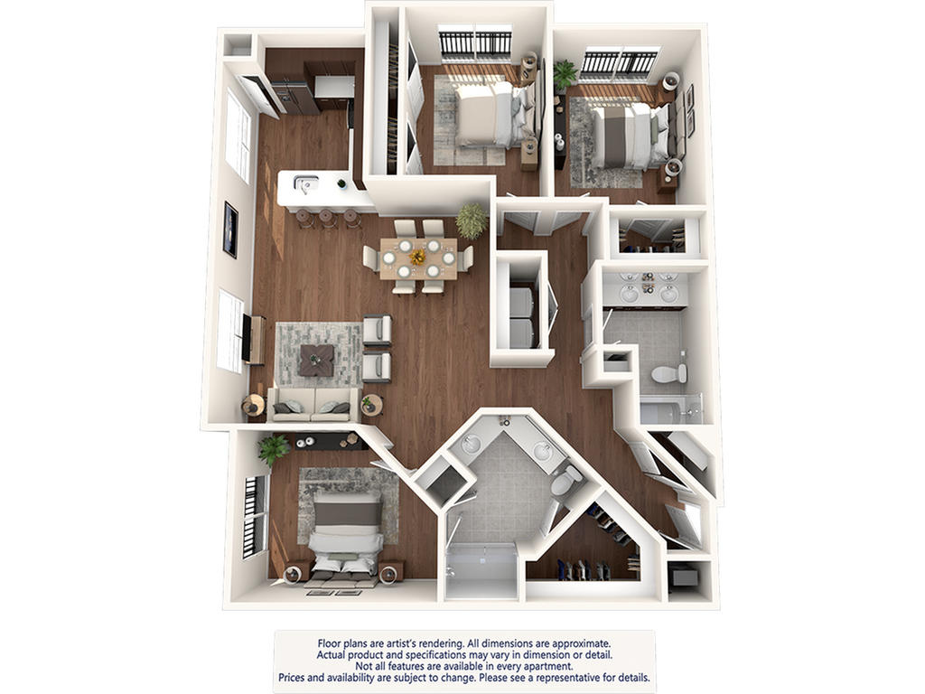 Apartment Model: C-ALT3From $2,0022 Bedroom, 2 Bath, 1129 sq ftAvailable Now- Floor plans are artist's rendering. All dimensions are approximate. Actual product and specifications may vary in dimension or detail. Not all features are available in every rental home. Prices and availability are subject to change. Base rent is based on monthly frequency. Additional fees may apply, such as but not limited to package delivery, trash, water, amenities, etc. Deposits vary. Please see a representative for details. ![]() - C-ALT3 - Floorplan 1 Apartment Unit: 477Apartment Model: C-ALT3From $2,0022 Bedroom, 2 Bath, 1129 sq ftAvailable Now- C-ALT2- From $1,9822 Beds, 2 Baths, 1081 sq ftAvailable Nov 1- Model Gallery- Floorplans- Availability Details- Price - Availability Date - Unit - Sq Ft - Deposit - View Details - $2,002 - November 1, 2025 - 405 - 1081 - $350 - $1,982 - November 18, 2025 - 309 - 1081 - $350 - Model Amenities and Features- Features- Air Conditioning