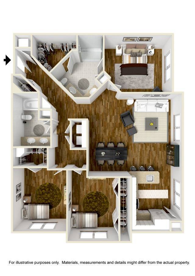 Apartment Model: C2Call For Rates2 Bedroom, 2 Bath, 1233 sq ftUnavailable- Floor plans are artist's rendering. All dimensions are approximate. Actual product and specifications may vary in dimension or detail. Not all features are available in every rental home. Prices and availability are subject to change. Base rent is based on monthly frequency. Additional fees may apply, such as but not limited to package delivery, trash, water, amenities, etc. Deposits vary. Please see a representative for details. ![]() - C2 - Floorplan 1