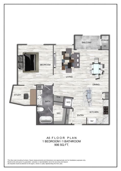 Apartment Model: A5Call For Rates1 Bedroom, 1 Bath, 906 sq ftUnavailableFloor plans are artist's rendering. All dimensions are approximate. Actual product and specifications may vary in dimension or detail. Not all features are available in every rental home. Prices and availability are subject to change. Base rent is based on monthly frequency. Additional fees may apply, such as but not limited to package delivery, trash, water, amenities, etc. Deposits vary. Please see a representative for details.