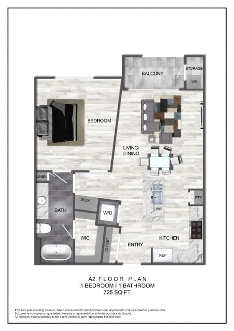 Apartment Model: A2From $1,8761 Bedroom, 1 Bath, 725 sq ftAvailable NowFloor plans are artist's rendering. All dimensions are approximate. Actual product and specifications may vary in dimension or detail. Not all features are available in every rental home. Prices and availability are subject to change. Base rent is based on monthly frequency. Additional fees may apply, such as but not limited to package delivery, trash, water, amenities, etc. Deposits vary. Please see a representative for details.