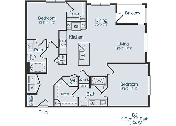 2 Beds, 2 Baths, 1774 sq ftLargest 2 BedroomThis is the largest 2 Bedroom at this PropertyModel Gallery