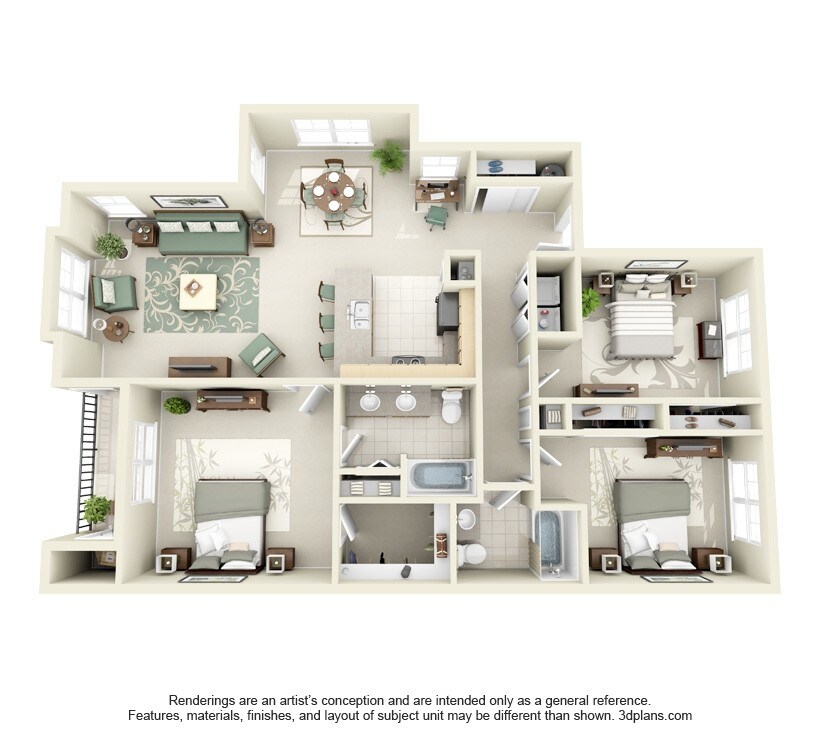 Apartment Model: C2Call For Rates3 Bedroom, 2 Bath, 1425 sq ftUnavailable![]() - C2 - Floorplan 1