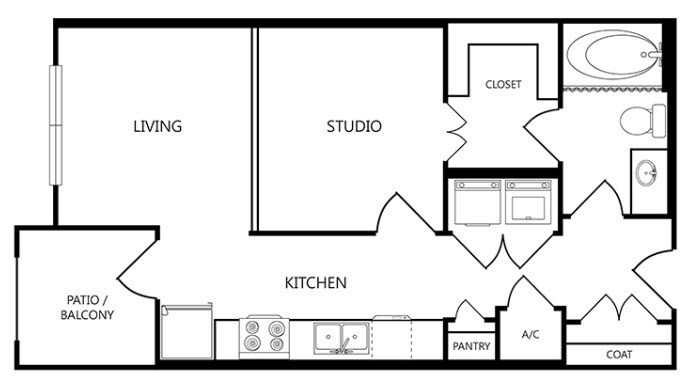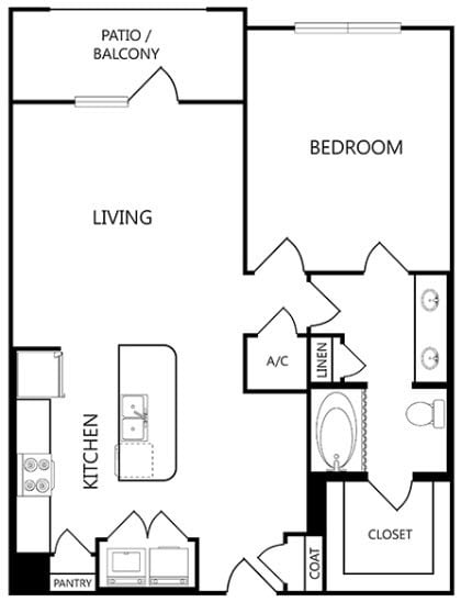1 Bed, 1 Bath, 656 sq ftAvailable NowModel Gallery