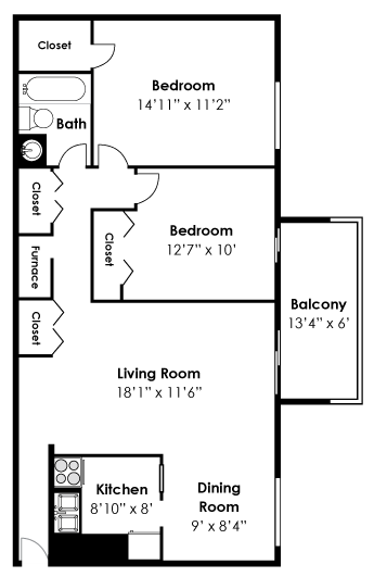 1 Bedroom 1 Bath Renovated - Floorplan 1 ![]()