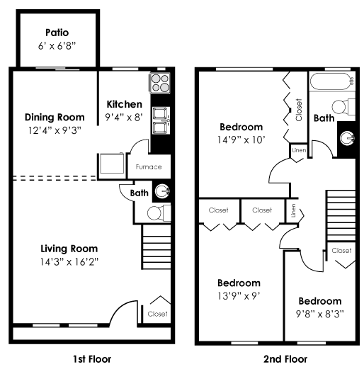 2 Beds, 1 Bath, 826 sq ftAvailable NowModel Gallery