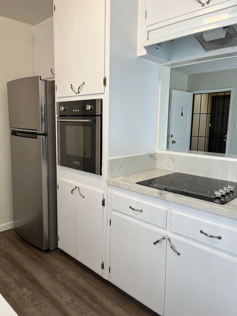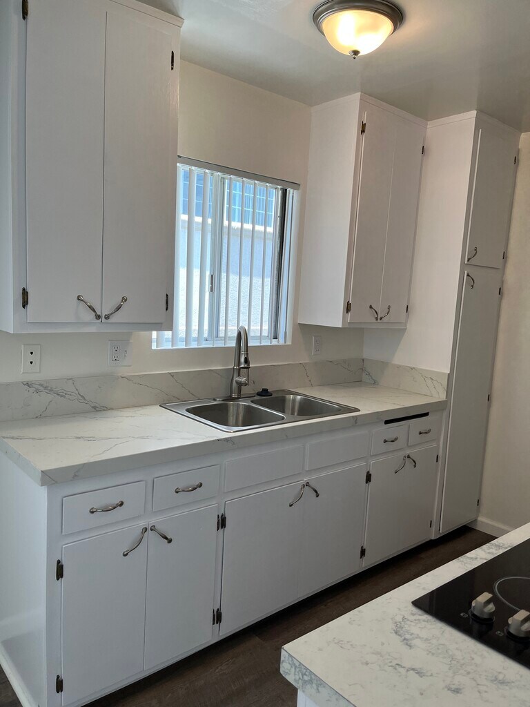 Charming but mature apartment in a quiet WLA neighborhood. Electric appliances, quartz countertops, and vinyl plank flooring throughout. Parking in back carport. Coin-op Washer/Dryer on site. Trash disposal included. Tenant pays own utilities. Will consider small pet with additional deposit. Available now. Perks include: central location near WLA PD, close freeway access, laundry room on premises. Appointment needed for showing. Text/Email communication for quickest response.