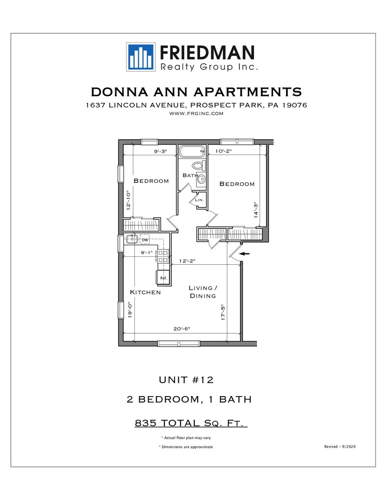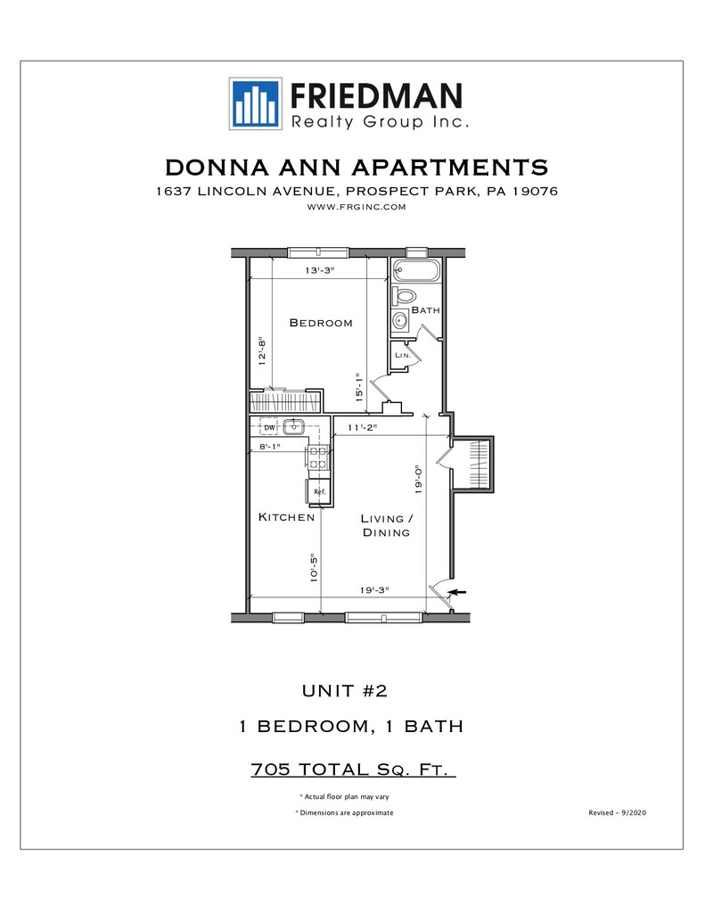 Welcome home to Donna Ann Apartments, a charming garden-style apartment community located in Prospect Park, PA. All apartment homes provide individually controlled heat and air conditioning, wall-to-wall carpet, spacious walk-in closets and private patios/balconies with views of the lush, beautifully landscaped courtyard. Select residences offer designer kitchens with white shaker style cabinets and appliances which include a dishwasher and garbage disposal. Our renovated bathrooms feature ceiling height tile tub surround, tile flooring, new vanities, and updated brushed nickel fixtures. All of our residents enjoy the conveniences of on-site laundry facilities and off-street sparking. Donna Ann Apartments is located on Route 420, just a few short blocks to Prospect Park Station where residents can hop on SEPTA's Regional Rail for a quick trip into Philadelphia, PA or Wilmington, DE. Residents will enjoy easy access to I-95, I-476 and is located within the desirable Interboro School District.