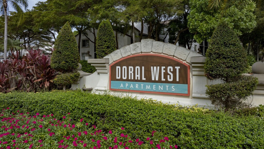 Located west of downtown Miami, Doral West is a gated oasis with spacious 1, 2, and 3 bedroom floor plans. This Doral apartment community overlooks an expansive lake with a winding 13-acre trail that gives you the feeling of a private, tucked-away community yet close to all the conveniences. Doral West apartments, a pet-friendly community, includes two inviting pools, a state-of-the-art fitness center, private tennis court, and more. Doral West not only provides an extensive amenity package, but it also offers a variety of floor plans to suit your needs, whether it’s an apartment or townhome-style that you’re looking for. Located only minutes from the area's most progressive employers and in the A-rated Doral school district Doral West apartments are less than one mile from the Florida Turnpike and 11 miles from Miami International Airport. Experience the lifestyle at Doral West and book a tour today.Doral West Apartments is an apartment located in Miami/Dade County, the 33178 ZIP Code, and the Miami-Dade attendance zone.