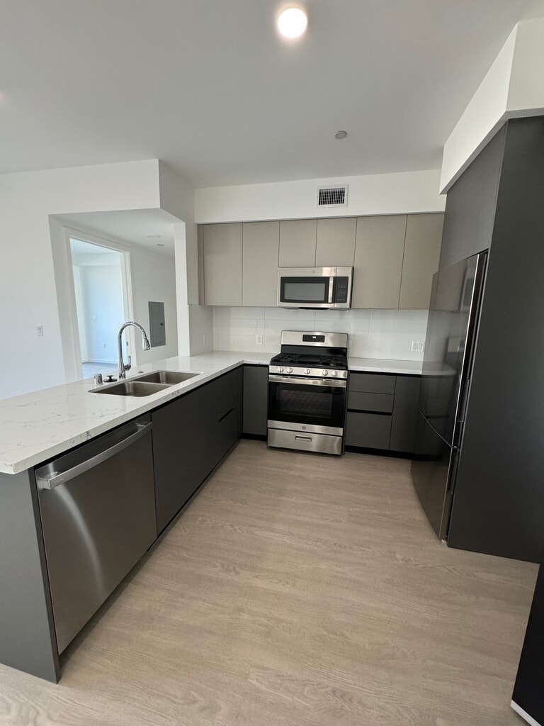 Welcome to Our New Modern 4-Story Building Luxurious 1, 2 and 3 Bedroom Units Experience the epitome of contemporary living in our soon-to-be-available brand new modern 4-story building. We take pride in offering exceptional 1, 2 and 3 bedroom units designed to elevate your lifestyle. Stylish Kitchen and Upscale Features Each unit boasts a sleek and modern kitchen equipped with stainless steel appliances, including a refrigerator and microwave. Enjoy the convenience of an in-home washer/dryer, ensuring laundry day is a breeze. Hardwood flooring adds a touch of elegance to the living space, and your own patio or balcony offers a private retreat to unwind and enjoy the surroundings. Amazing Amenities Our building is thoughtfully designed to provide an array of amenities that enhance your daily life. With security cameras, your comfort and safety are our top priority. The gated parking ensures your vehicle is secure, while the intercom system and elevator provide easy access and convenience. Prime Location Conveniently situated in a prime location, our building offers easy access to all that the area has to offer. Explore nearby attractions, restaurants, and entertainment options, all just a stone's throw away. With excellent transport links and major roadways within reach, you'll enjoy seamless connectivity to the wider city. Secure Your Spot Today Don't miss out on the opportunity to be among the first to call our remarkable new building home. Contact us now to reserve your unit and experience the pinnacle of modern living. Welcome to a world of luxury, convenience, and style.