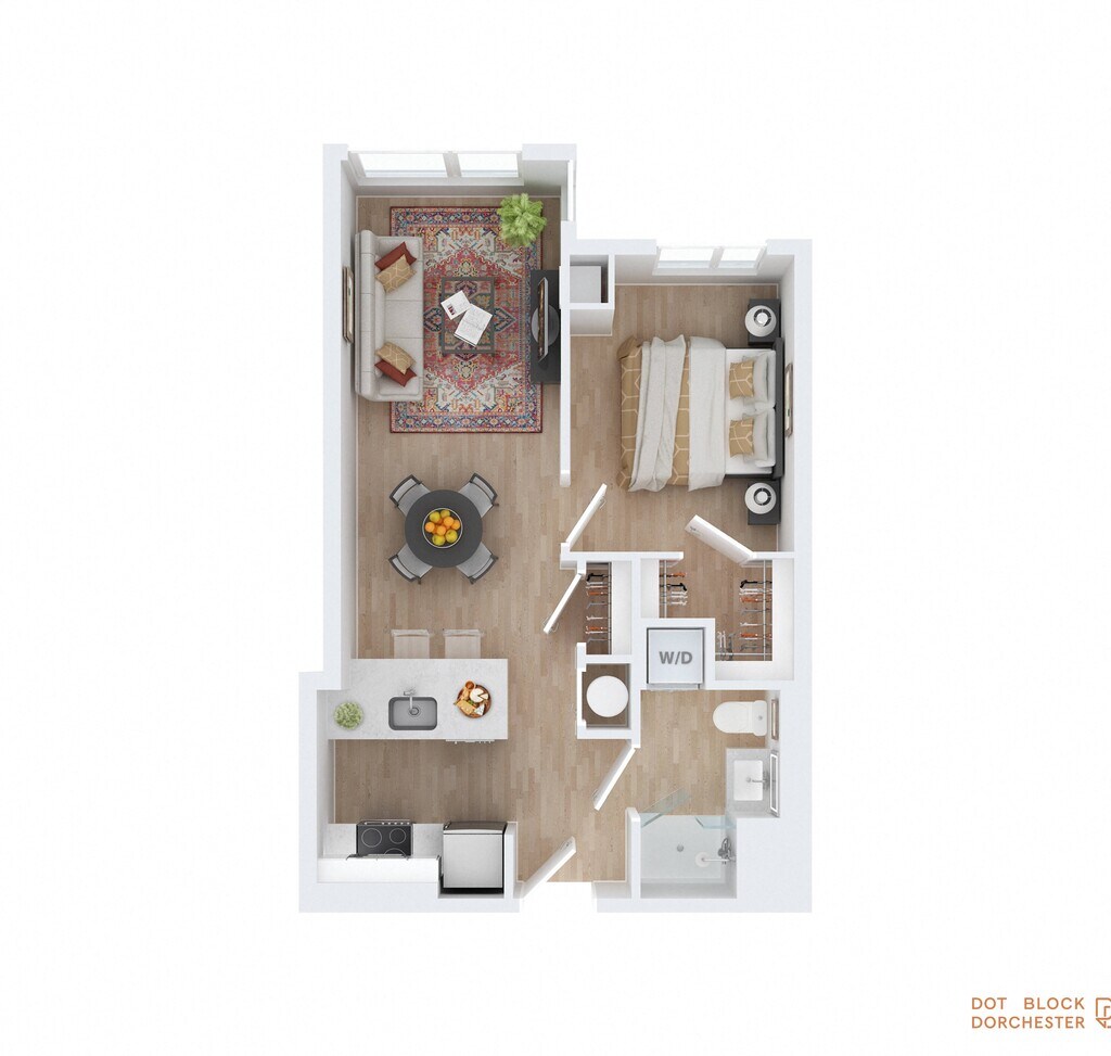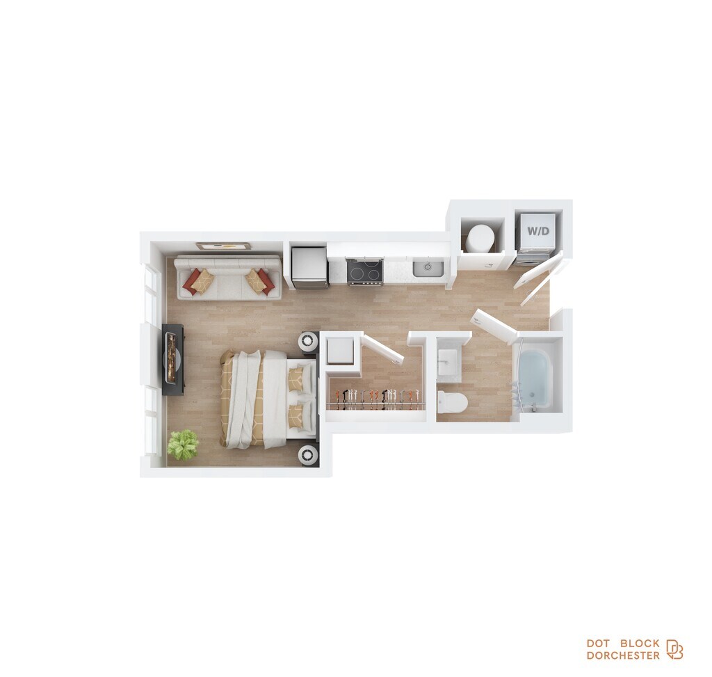 Apartment Model: DN_A-5$2,545Studio, 1 Bath, 407 sq ftAvailable Now![]()