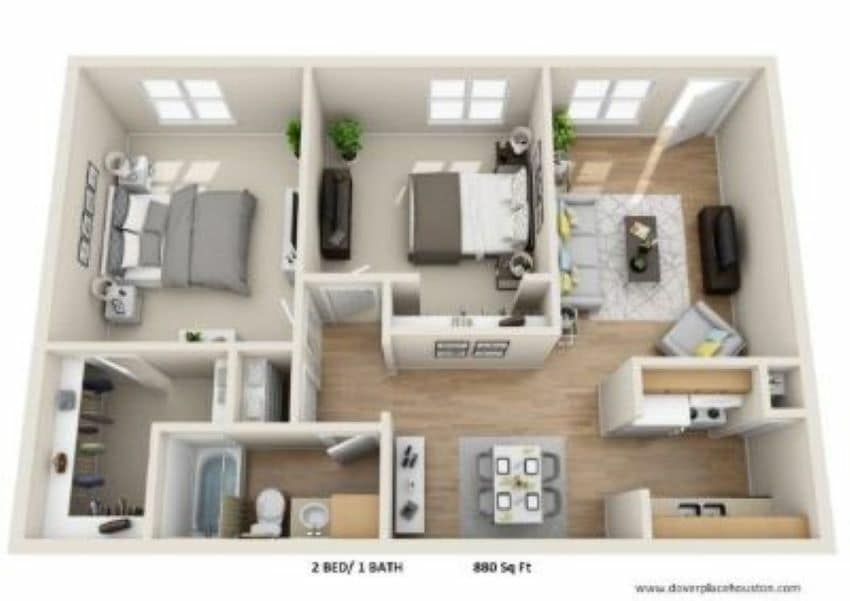 2 Beds, 1 Bath, 880 sq ftAvailable NowModel Gallery