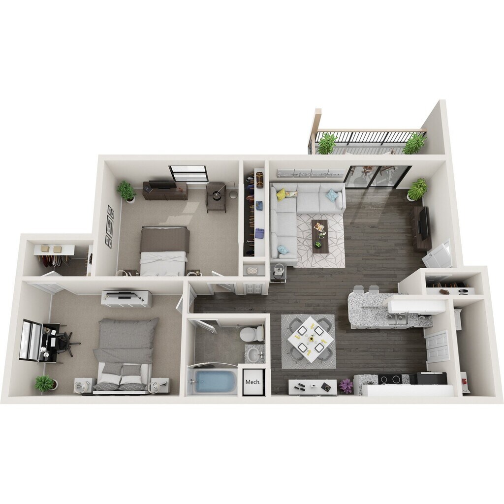 2 Beds, 1 Bath, 850-877 sq ftAvailable NowCheapest 2 BedroomThis is the cheapest 2 Bedroom at this PropertyModel Gallery