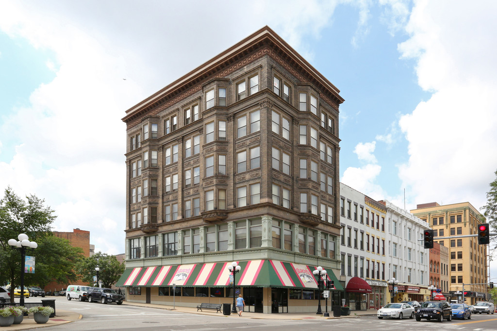 Manhattan and Chicago style loft apartment Downtown Bloomington. Panoramic views of Downtown expand an entire floor in The Livingston Building.