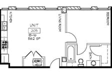 1 Bedroom 1 Bath - Floorplan 2 ![]()