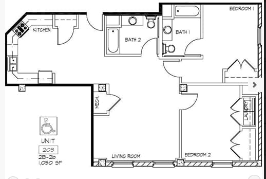 2 Bedroom 1 Bath - Floorplan 2 2 Bedroom 2 Bath