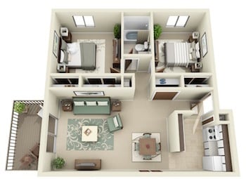 Apartment Model: Two Bedroom$8502 Bedroom, 1 Bath, 802-814 sq ftAvailable NowTwo Bedroom - Floorplan 1