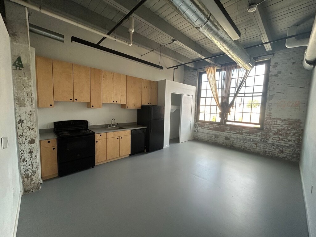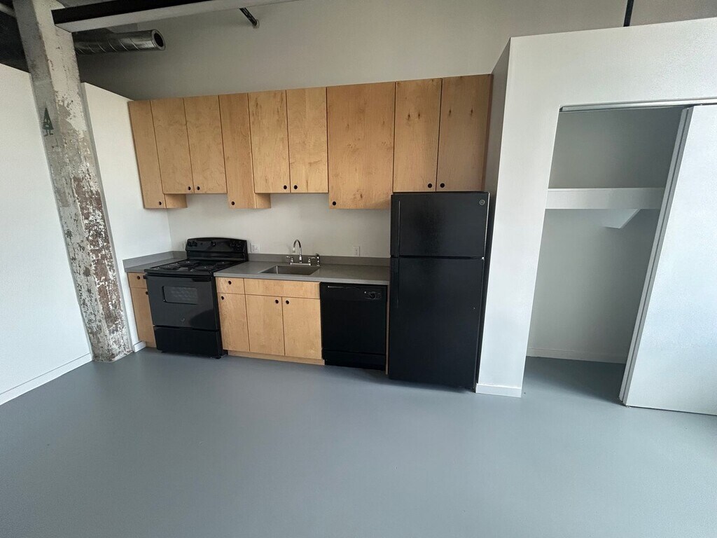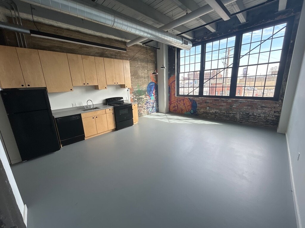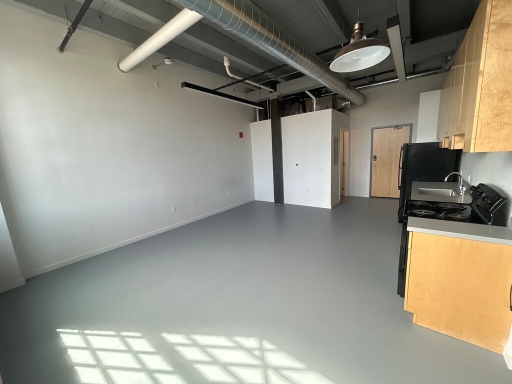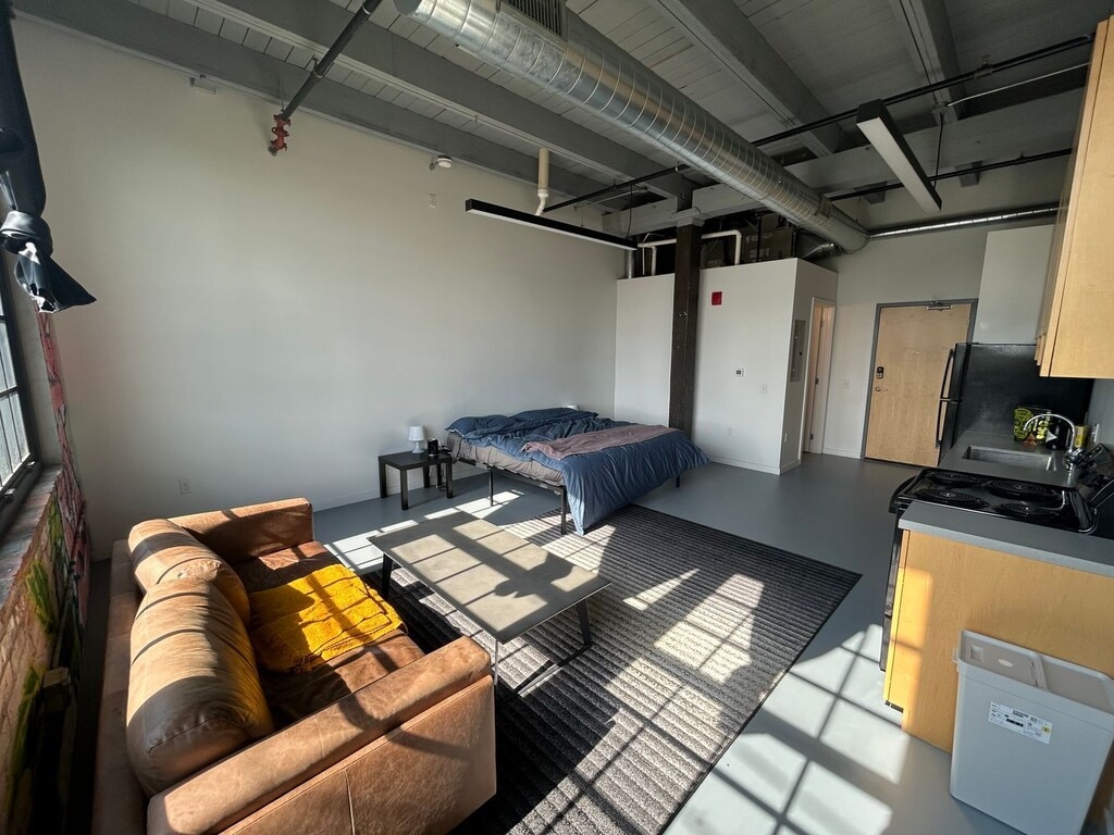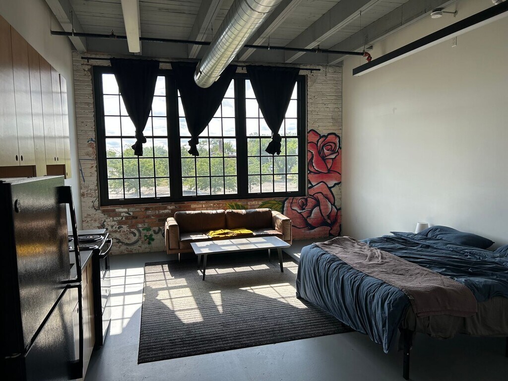 Studio units are the most common space available at Dreamtroit. Raw and industrial but with comfortable and efficient kitchen and bath, these micro loft style units come in a multitude of sizes. Useable for living space, small business, or artist/musician studio.