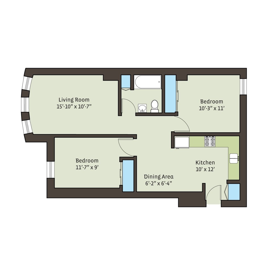 2 Beds, 1 Bath, 715 sq ftModel Gallery