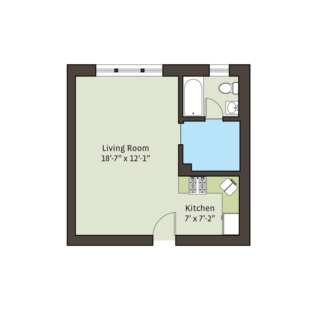 Apartment Model: drxg0bdStudio, 1 Bath, 350 sq ftAvailable Nowdrxg0bd - Floorplan 1 1 Bedroom