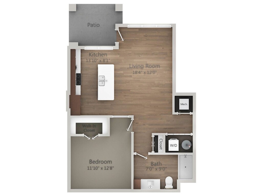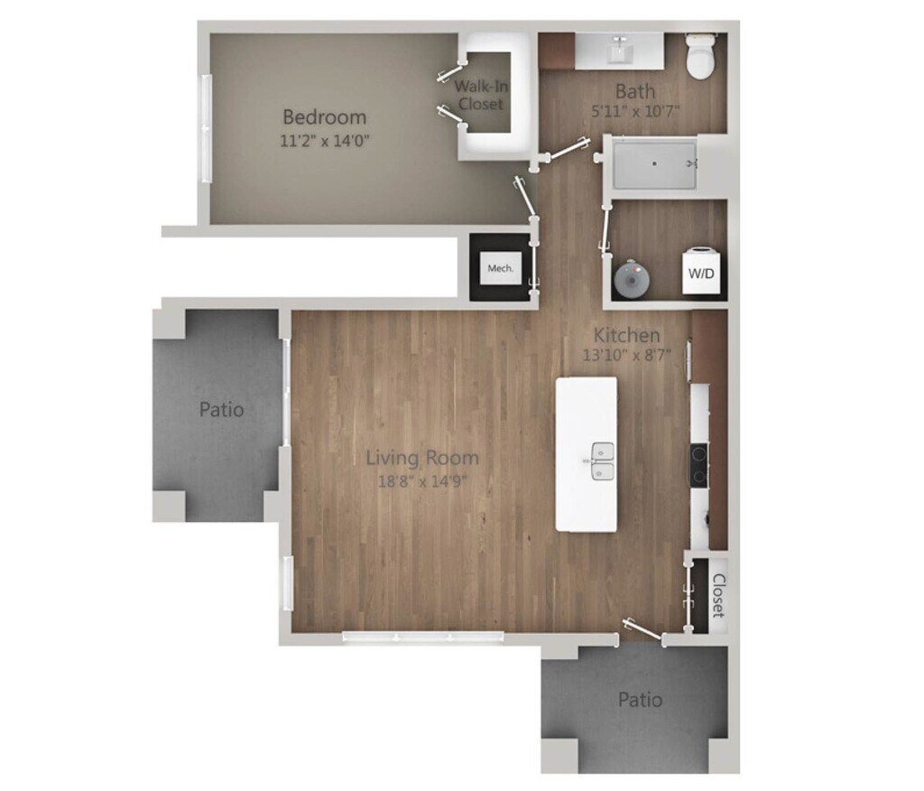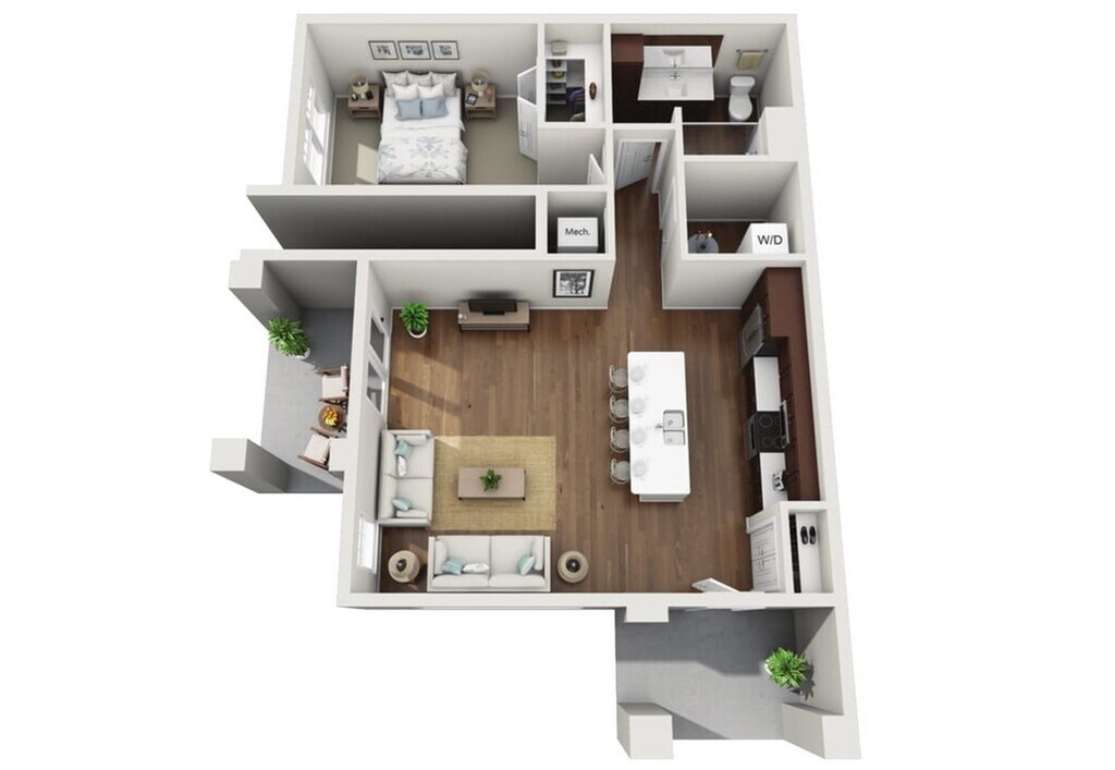 1D - Floorplan 2 Apartment Unit: 4-206Apartment Model: 1DFrom $1,6751 Bedroom, 1 Bath, 970 sq ftAvailable November 13, 20251.1I