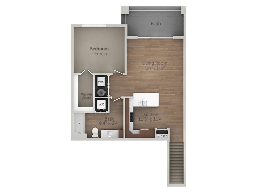 1.1B - Floorplan 2 Apartment Unit: 17-202Apartment Model: 1.1BFrom $1,4951 Bedroom, 1 Bath, 906 sq ftAvailable November 13, 2025Floorplan 1D