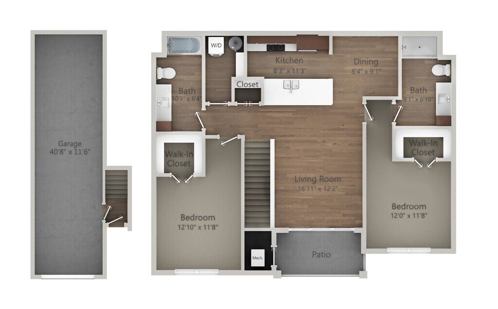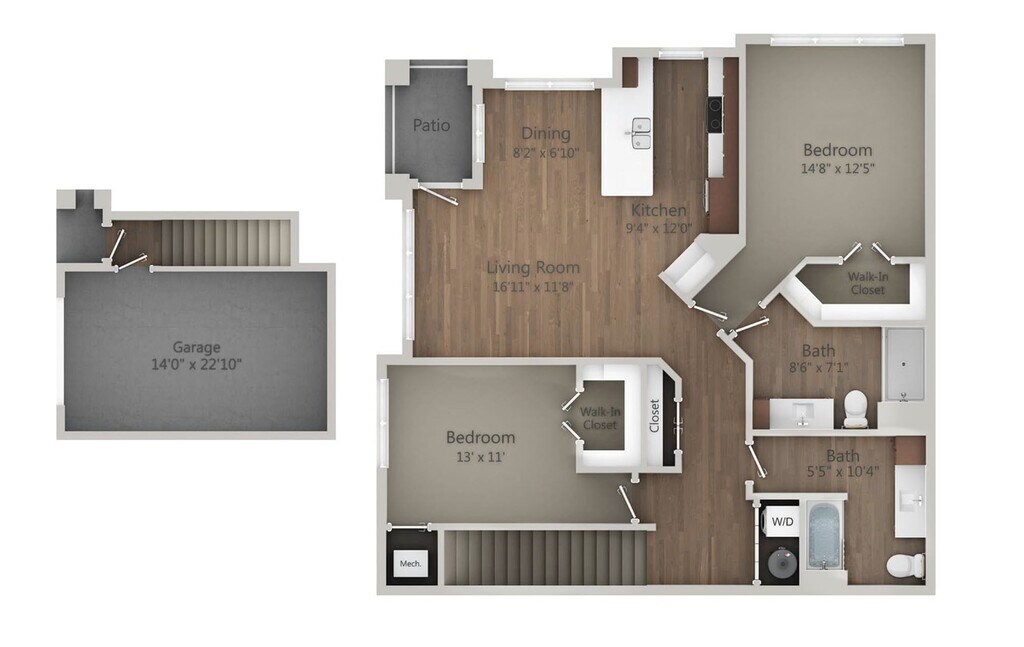 1 Bed, 1 Bath, 970 sq ftAvailable NowModel Gallery