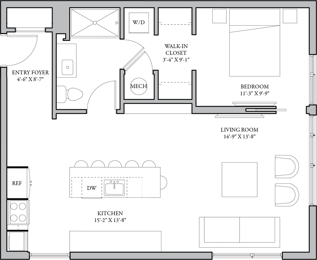 1 Bed, 1 Bath, 673 sq ftAvailable Dec 13Model Gallery