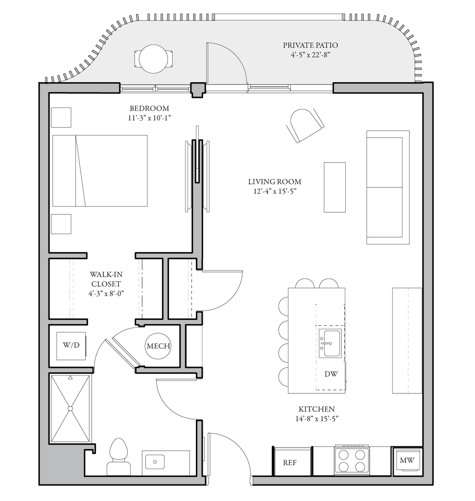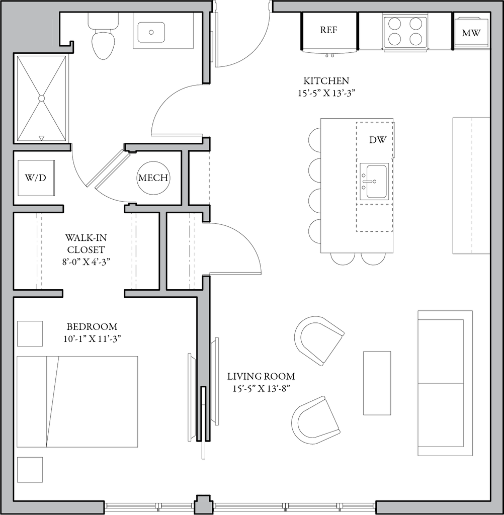 1 Bed, 1 Bath, 723 sq ftModel Gallery