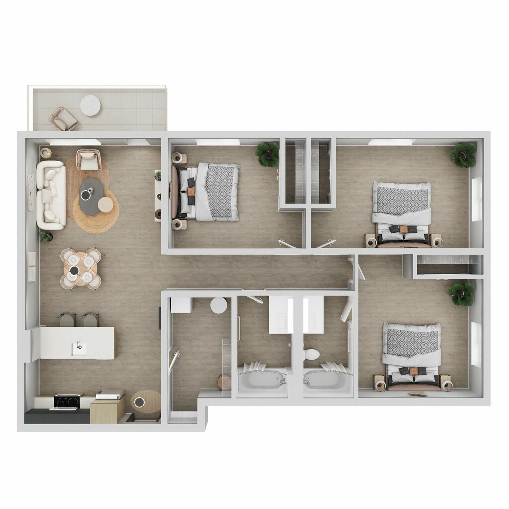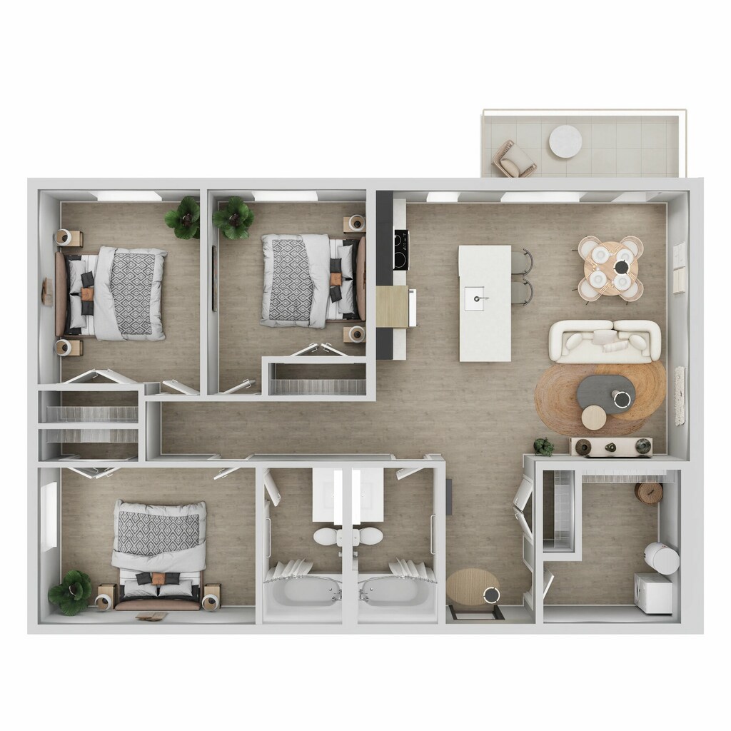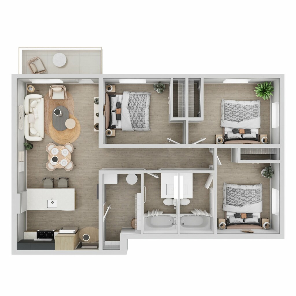 3 Beds, 2 Baths, 1042 sq ftModel Gallery
