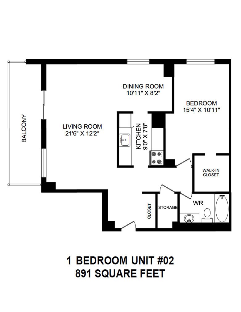 1 Bedroom - Floorplan 6 2 Bedrooms