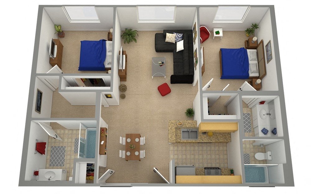 2 Beds, 2 Baths, 880 sq ftModel Gallery
