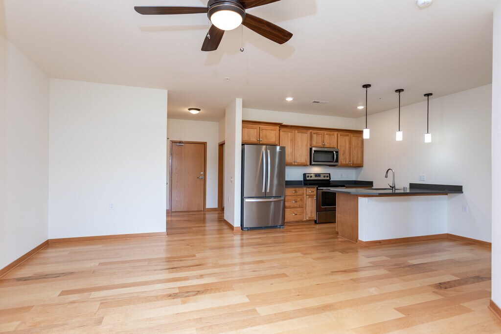Newly constructed building, Drumlin Residences apartment living for Active Adults 55+ located in the Village of Cottage Grove, nestled in a rural setting with all the amenities you need. Coffee shop, restaurant, Drumlin bike trails right outside your door. The perfect solution for those individuals looking for a maintenance free living. Every unit has custom Amish Cabinetry with soft close, stainless steel appliances, open concept living room/kitchen area, wood flooring, carpet, walk in showers, Kohler fixtures, goose neck kitchen faucet and pull-down sprayer, solid wood doors, walk-in closets, walk in laundry room with washer and dryer. Storage units and refuse shoot on the same floor as apartments, quality grade materials and energy efficient apartments. Every unit also has a patio or balcony.