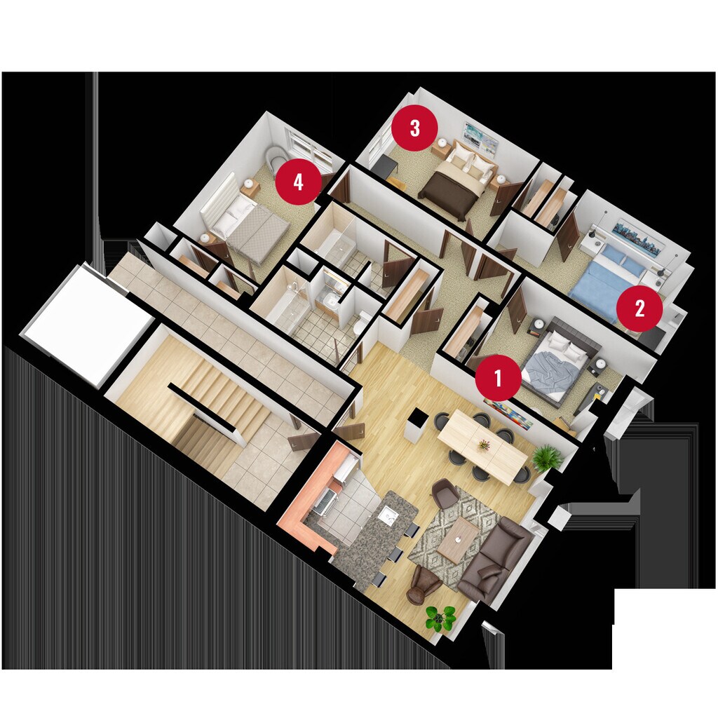4 Beds, 2 Baths, 1275 sq ftAvailable Jun 1, 2026Model Gallery