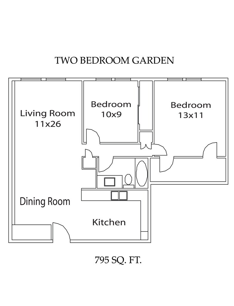 2 Beds, 1 Bath, 795 sq ftAvailable NowModel Gallery
